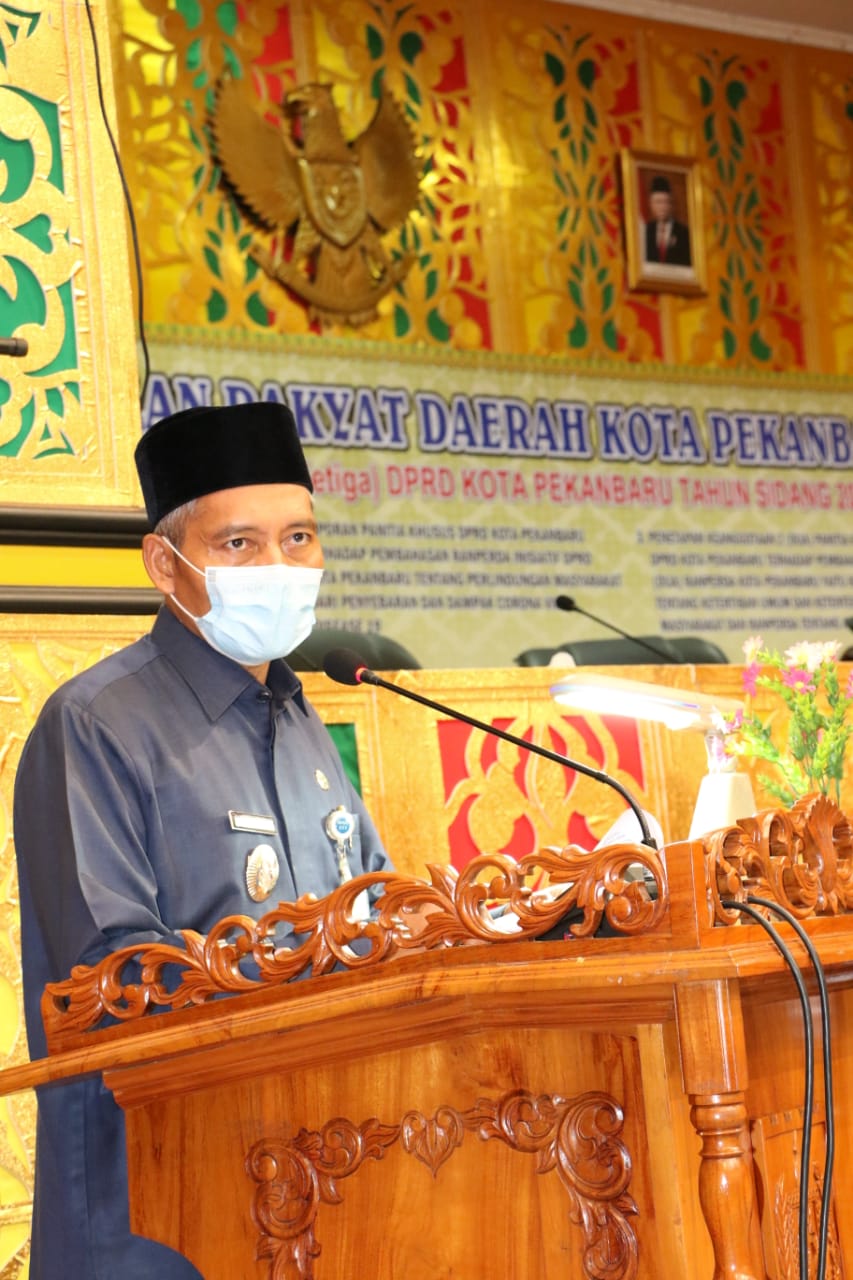 PEKANBARU - Wakil Wali Kota (Wawako) Pekanbaru H Ayat Cahyadi SSi mengikuti Rapat Paripurna ke-3 Masa Persidangan III DPRD Ko